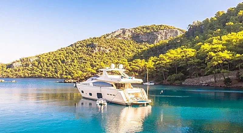 Antalya, located on Turkey's Mediterranean coast, is known for its beautiful beaches, crystal-clear waters, and stunning views. As AYA Yachting, we are an exclusive yacht rental company based in Antalya, offering our customers the opportunity to explore the region's hidden gems, including Porto Ceneviz and Sazak Bay.